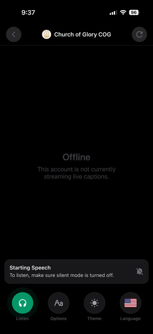 3) You can use the listen function to hear the captions in an AI voice of your choosing! if you would like to bring your own headphones to use the listen function, where an AI voice speaks out the captions to you, you can, or you can borrow one of the church provided headphones, please don't forget to return them!